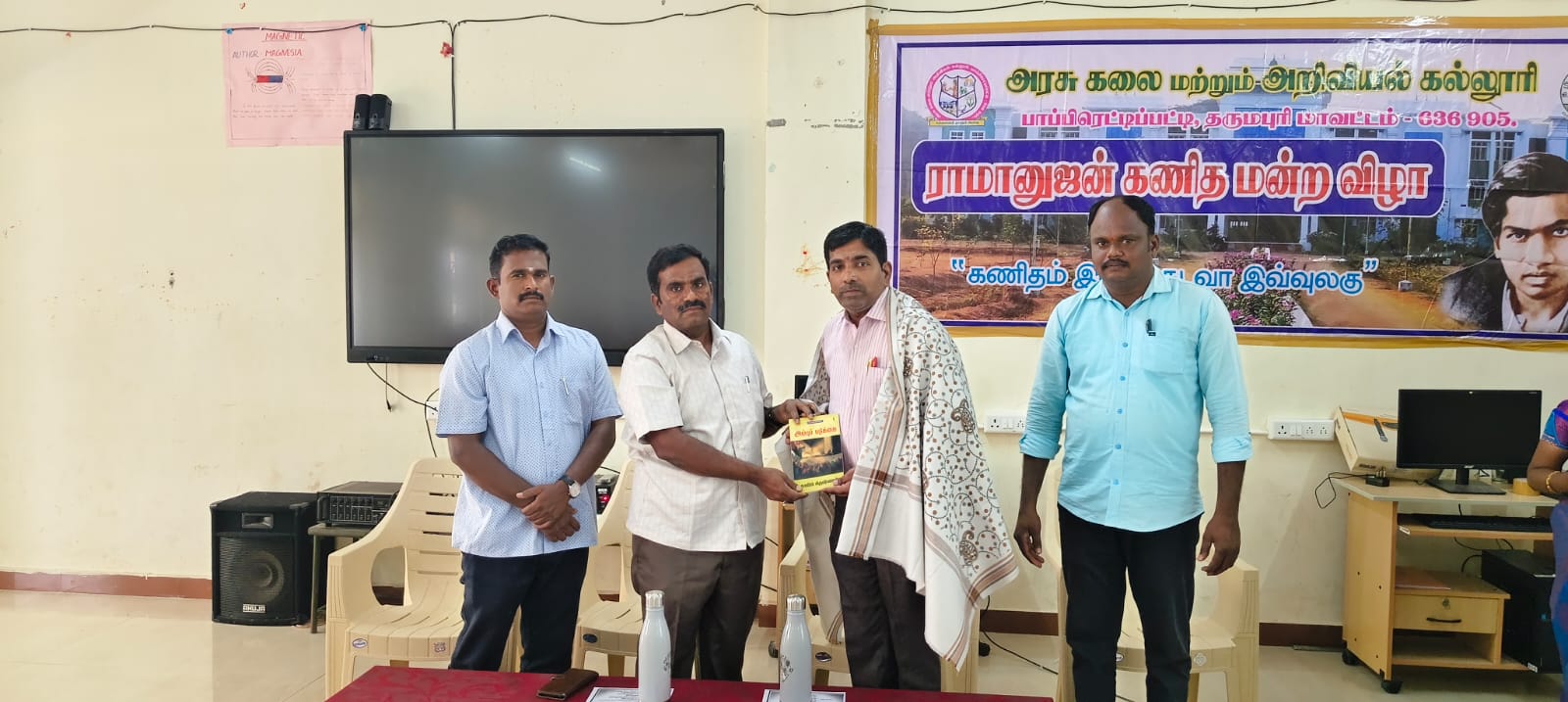அரசு கலை மற்றும் அறிவியல் கல்லூரி பாப்பிரெட்டிப்பட்டி ராமானுஜன் கணித மன்றம், கணிதவியல் துறை சார்பாக மன்ற விழா கல்லூரியின் முதல்வர் முனைவர் வீ.இரவி அவர்களின் தலைமையில் (24.03.2026) அன்று நடைபெற்றது. இதில் சேலம் சோனா தொழில்நுட்பக் கல்லூரி கணிதவியல் துறை உதவி பேராசிரியர் முனைவர் ரா.ரமேஷ் அவர்கள் சிறப்பு விருந்தினராக கலந்து கொண்டு Differential Equations and It's Applications எனும் தலைப்பில் சிறப்புரையாற்றினார். இதில் கணிதத்துறை சார்ந்த மாணவ மாணவிகளும் கலந்து கொண்டனர்.