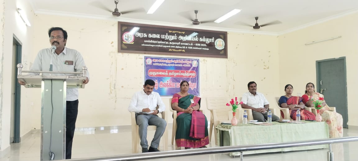 நமது கல்லூரியில் தமிழ்த்துறை சார்பாக 24.03.2026 அன்று தமிழ் இலக்கிய மன்ற விழா கல்லூரி முதல்வர் முனைவர் வீ.இரவி அவர்கள் தலைமையில் நடைபெற்றது. இவ்விழாவிற்கு முனைவர் மு.மணிமாது, முதுகலைத் தமிழாசிரியர் சூளகிரி, அரசு ஆண்கள் மேல்நிலைப்பள்ளி, அவர்கள் கலந்துகொண்டு சிறப்புரையாற்றினார். இந்நிகழ்வினை தமிழ்த்துறைத் தலைவர் முனைவர் டி.க.சித்திரை செல்வி அவர்கள் ஒருங்கிணைத்தார்.